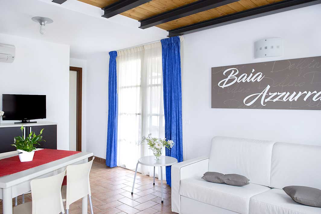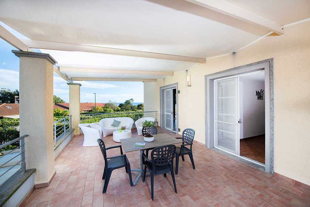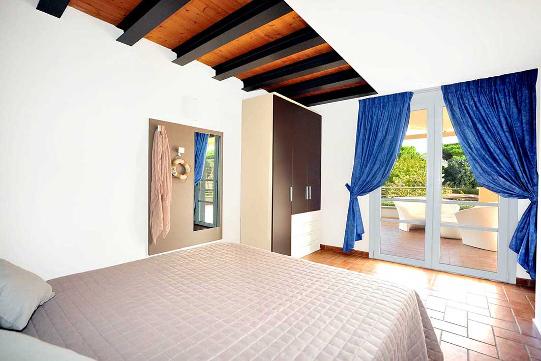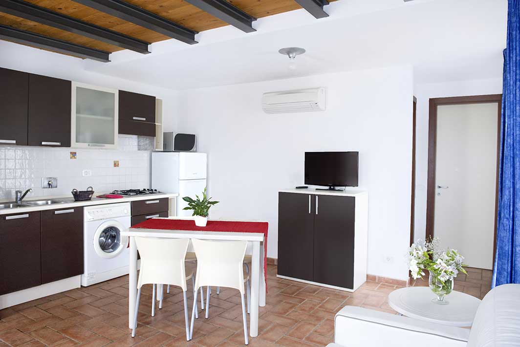 Appartement de 42 m2 au premier étage avec entrée indépendante, terrasse vue mer équipée avec table, chaises, transats et barbecue, une chambre double (+ lit supplémentaire), salle de bain avec douche, bidet et sèche-cheveux mural, séjour avec canapé-lit double , kitchenette avec vaisselle, lave-vaisselle, lave-linge, four micro-ondes, TV, climatisation, coffre-fort.